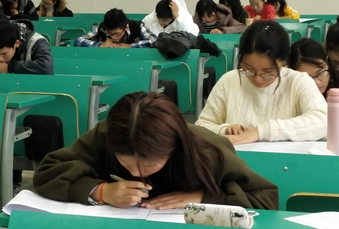考试现场氛围良好,各位参考同学自觉遵守考场纪律,按序就坐。考试过程中,同学们认真分析,仔细作答,时而低头沉思,时而奋笔疾书,有条不紊的进行答题;监考人员认真巡查,秉持考场原则,依照四六级考试的标准模式进行监督。