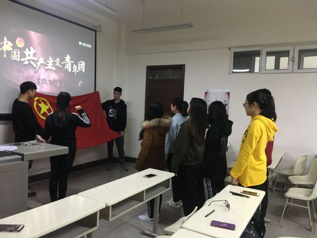 2018年3月15日,yl6809永利官网团委本着坚持原则、保证质量、加强培养、积极发展的工作要求,坚持入团自愿和组织吸收的原则,在学院302教室组织开展了新团员入团仪式。全体新团员在学院团委组织委员古再丽努尔的带领下,以最宏亮的声音,面对鲜艳的团旗,进行了庄严的宣誓。