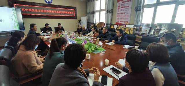 为做好党支部与连队(社区)党支部结对共建和党员常态化参与志愿服务活动,2021年10月27日,yl6809永利官网教育系党支部与石河子市第五中学党总支联合开展教育教学结对共建座谈会。石河子市第五中学校长刘华、副校长骆骏峰、教研室主任、德育主任、以及名师工作室教师参加了此次活动。yl6809永利官网副院长赵红霞、教育系党支部书记刘强、教育系主任付娟以及教育系教育学教研室教师参加了此次活动。