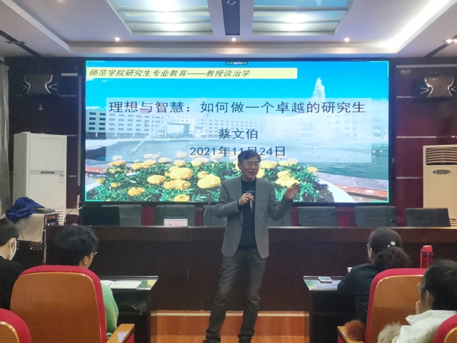研究生新生入学教育旨在引导学生牢牢把握时代主流,树立学术从业志向,自觉担当家国责任,尽快适应研究生科研学习新环境、新节奏、新生活。学院“研究生新生入学教育暨专业教育——教授谈治学”学术讲座于11月24日20:30-22:30在yl6809永利官网一楼学术报告厅举办。此次学术讲座邀请了学院蔡文伯教授为全体研究生做了“理想与智慧:如何做一个卓越的研究生”专题讲座。会议采用线上线下结合的形式,由学院研究生管理与学科建设办公室主任范树花老师主持,部分研究生导师参会。