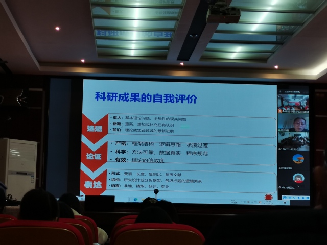 为提高学院教师及研究生教育科研论文写作水平,我院特邀请北京师范大学教育与经济管理专业博士,重庆文理学院教授,《重庆高教研究》常务副主编蔡宗模教授为我院师生做了一场题为《教育科研论文的选题、写作与发表》的专题讲座。讲座于2021年12月1日16:00-18:00,采取线上线下相结合的形式举办,学院教育系主任付娟博士主持,现场座无虚席,线上吸引了180余名高校及中小学教师聆听。