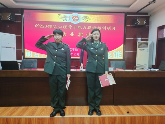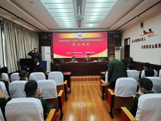 12月29日上午,为期20天的69220部队“心理骨干能力提升”培训项目结业典礼在学院一楼学术报告厅举行,培训部主任唐新、项目负责人毕爱红、班主任及38名参训学员参加了结业典礼。