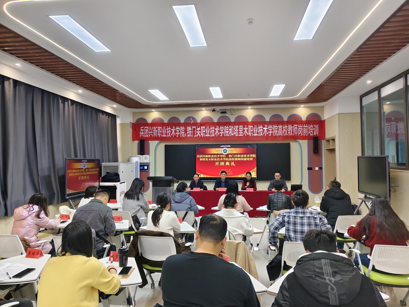 1月7日,兵团兴新职业技术学院、铁门关职业技术学院、塔里木职业技术学院高校教师岗前培训在铁门关职业技术学院开班。兵团教育学院党总支书记郝朝晖、铁门关职业技术学院副院长何莲梅、兵团兴新职业技术学院副院长曾晓峰、培训团队及76名参训学员参加开班典礼。